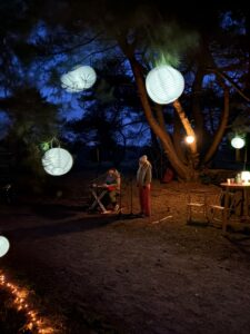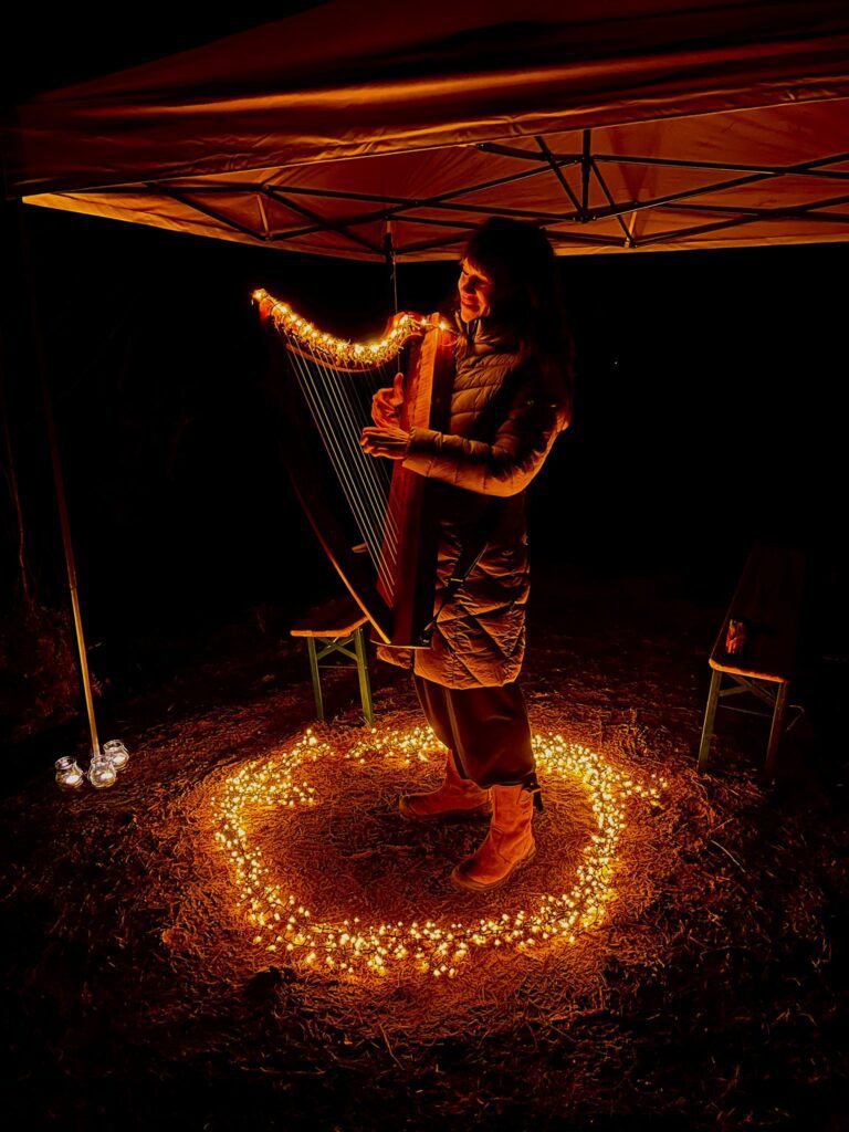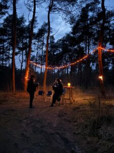Langs de verlichte route van ongeveer één kilometer konden bezoekers op verschillende plekken even stilstaan. De vertrouwde, serene harpklanken van Daniëlle Uriël begeleidden de wandeling, dit jaar aangevuld met de rustgevende klanken van klankschaalmuzikant Corinne van Ark van Klank. Nieuw dit jaar was het muziekduo Suzan & Jasper, dat met hun samenzang en muzikale begeleiding zorgde voor een warme en intieme sfeer onder de bomen.