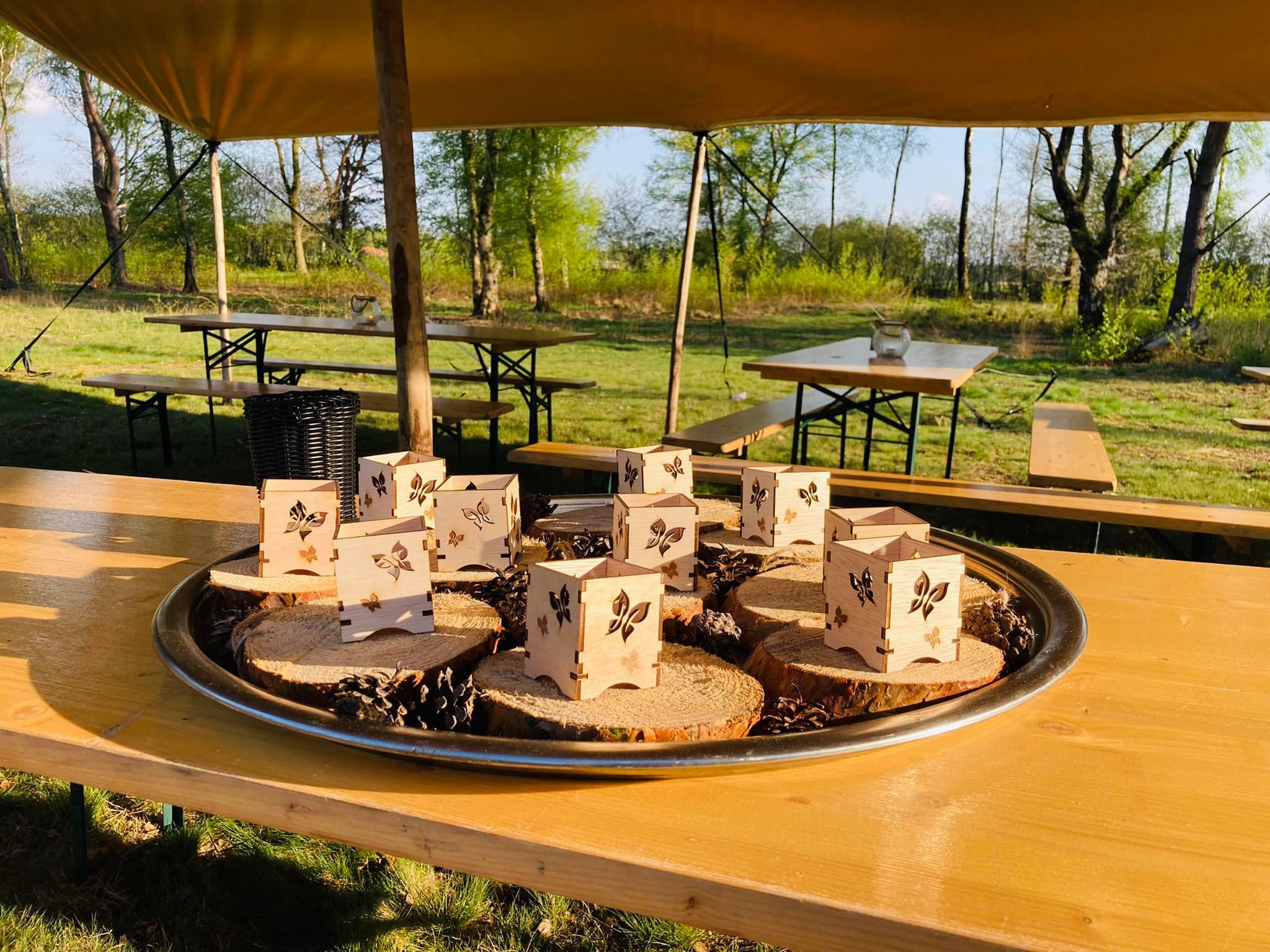 Na het gedenkmoment was er gelegenheid om het graf te bezoeken en op te warmen met koffie, thee en wat lekkers. Voor iedere overledene lag een kaarsenhouder met kleine boomschijf klaar. De kaarsen werden aangestoken voor de overledenen en de boomschijf werd beschreven. Deze symboliseert de verbinding tussen de natuurbegraafplaats en thuis. In de gedenkcirkel konden de namen bijgeplaatst worden. Hiermee wilden we laten weten dat we niemand vergeten, niemand loslaten, maar leren om diegene anders vast te houden. In het hart te koesteren.