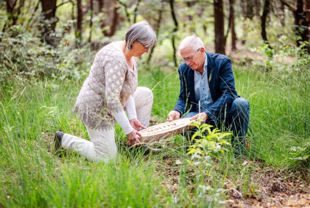 Wandelaars hebben vaak niet eens door dat ze over een begraafplaats lopen. De graven gaan langzaam op in de natuur. Sommige graven zijn na een tijdje nauwelijks meer te onderscheiden. Dankzij ons register (kaart.hoogengraven.org) met coördinaten is ieder graf weer eenvoudig terug te vinden. Ook zonder een boomschijf kunnen we je altijd vertellen waar de laatste rustplaats van jouw dierbare is.